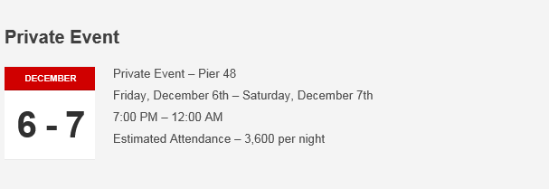 Oracle Park Event Advisory December 2019