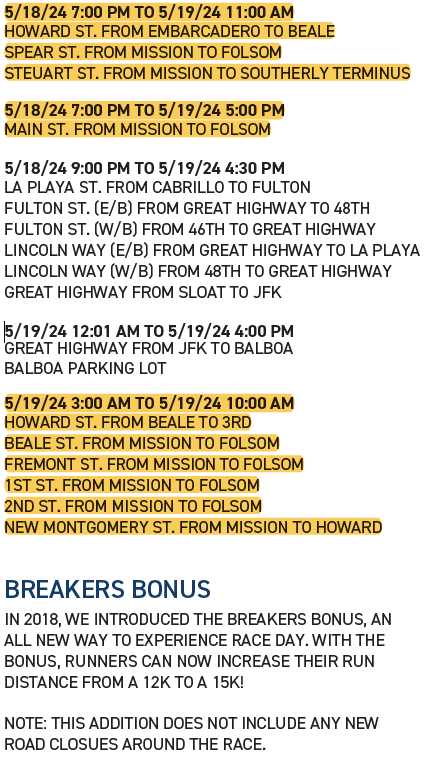 BAY TO BREAKERS, 5/17/24-5/20/24