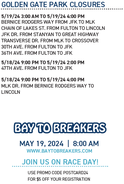 - BAY TO BREAKERS, 5/17/24-5/20/24
