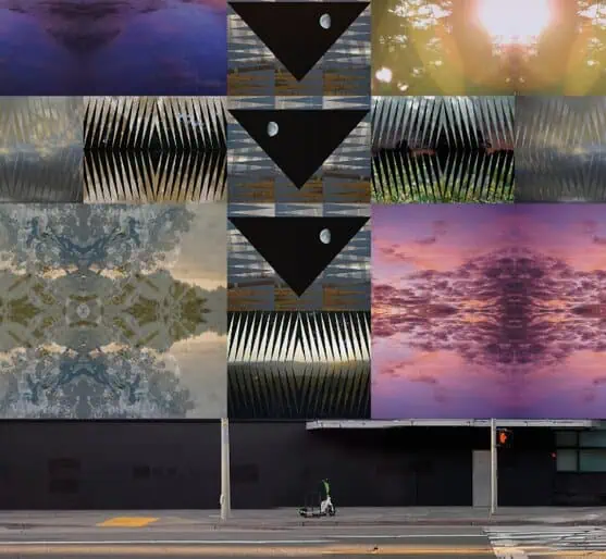 The work builds on Gibson’s 2022 video installation This Burning World, which featured footage from upstate New York and the Bay Area. Stills from the original piece are reimagined into a city-block-long tapestry that blends modernist abstraction with Indigenous patterns, creating a vibrant celebration of nature and humanity’s connection to the environment.